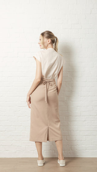 这款长裙的与众不同之处在于后背迷人的系带细节。可调节的系带条纹为设计增添了独特而引人注目的元素,让您可以定制合身度并突出您的腰线。